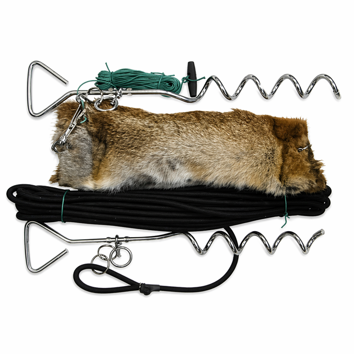 Fastgør systemet i jorden, træk linen tilbage og udløs dummyen, så den bevæger sig væk fra hunden.